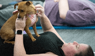 Though the act of practicing yoga while small dogs run around, over and under the students may blur the lines between spiritual practice and pure, silly enjoyment, there’s a deeper cause than what’s on the surface. “It’s really about bringing everybody together, raising awareness for the rescues [and]…any adoptions that are happening,” said Debra Furstenberg, the owner and one of the operators of Doggy Noses and Yoga Poses (DNYP), the organization that made it all possible.